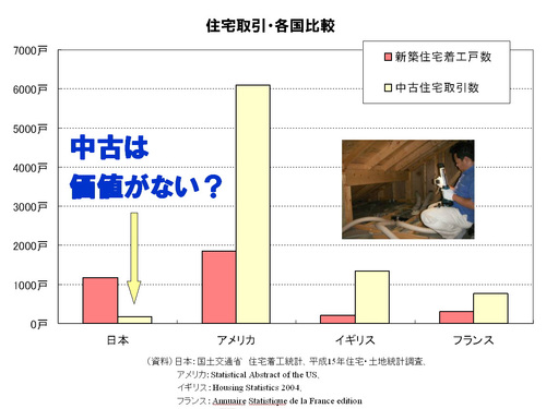 また、「築25~30年で価値ゼロ」といった常識がまかり通ることに代表されるように、的確な査定手法が確立されておらず、不動産流通のしくみが整備されていないことも大きい。