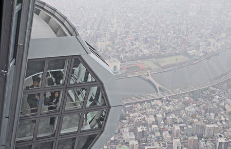 5月22日に開業する東京スカイツリー(東京都墨田区)の地上450メートルにある「天望回廊」が17日、報道陣に初めて公開された。