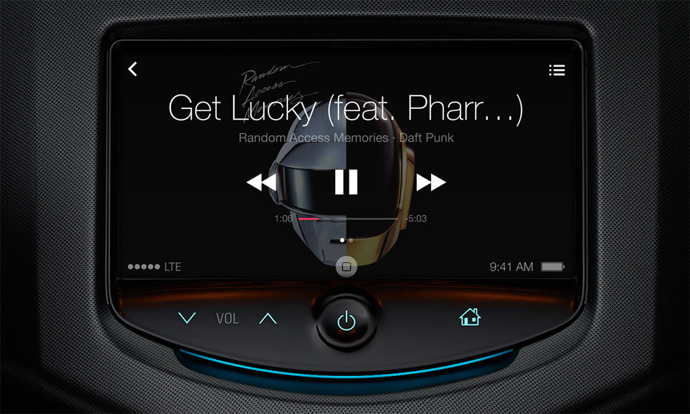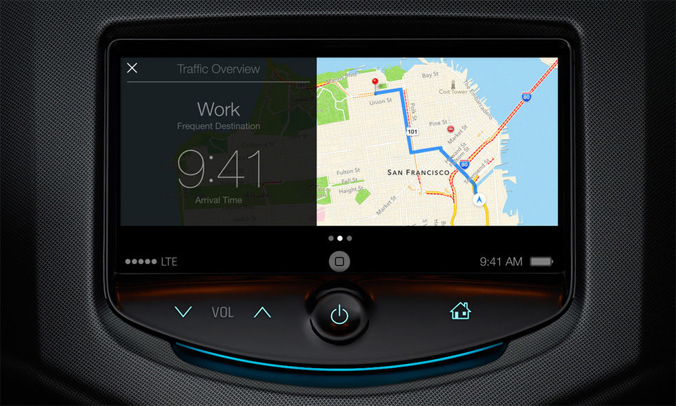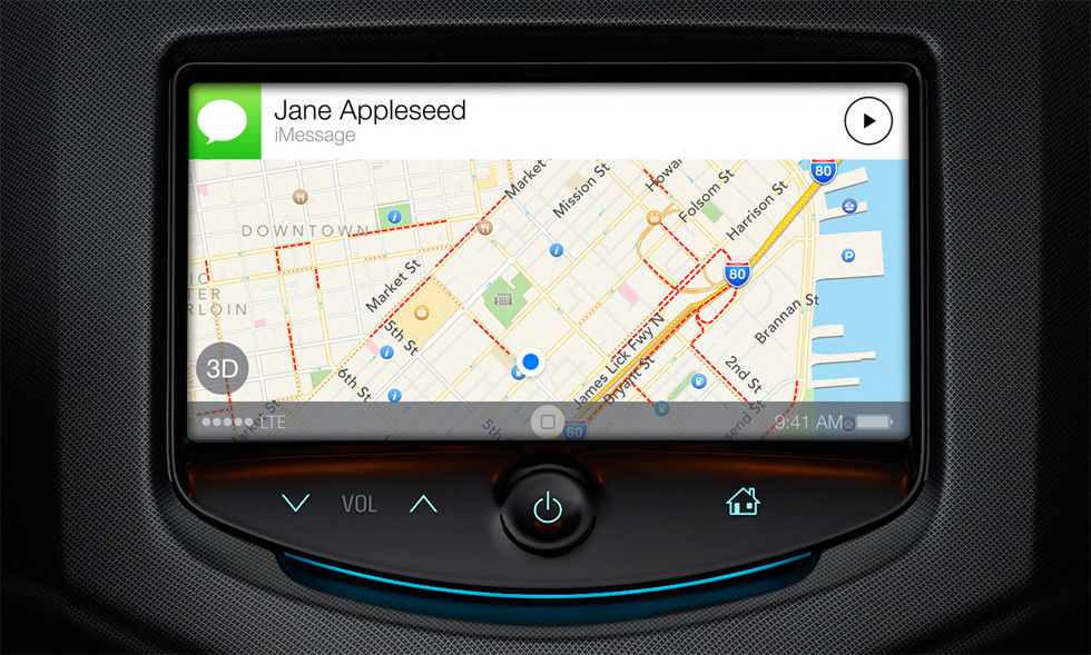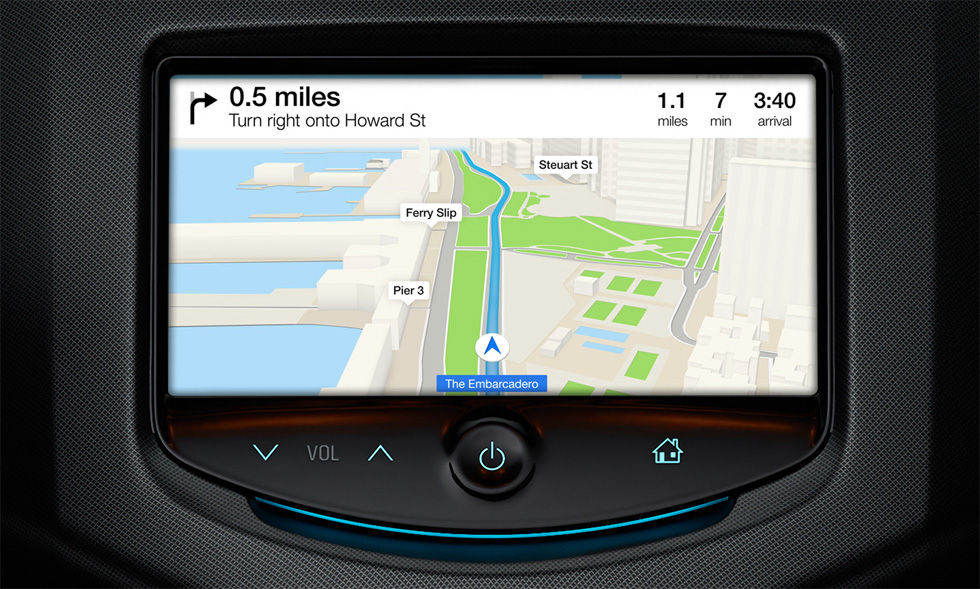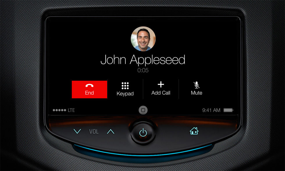「iOS in the Car」は、iPhoneと車側に用意されるディスプレイ端末を接続することで、通話やメッセージの送受信、「マップ」を使ったカーナビゲーション、音楽やストリーミングサービス「iTunes Radio」など、「siri」を使った音声コントロールで、iPhoneの機能を利用できるというもの。