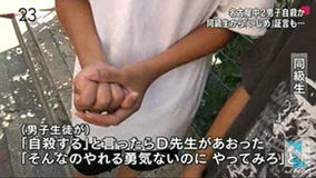 「A君が(男子生徒に)死ね死ねって言っていた。Bちゃんも乗っかって死ね死ね言っていた。(男子生徒が)『自殺する』と言ったら、D先生があおった。『そんなのやれる勇気ないのに、やってみろ』と」(同級生)