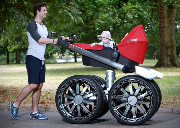 メガ・ベビーカーともいうべきこれは、20インチアルミホイール、油圧サスペンション、抗ストレスグリップという重装備。