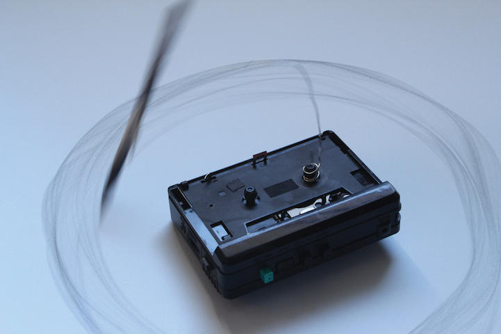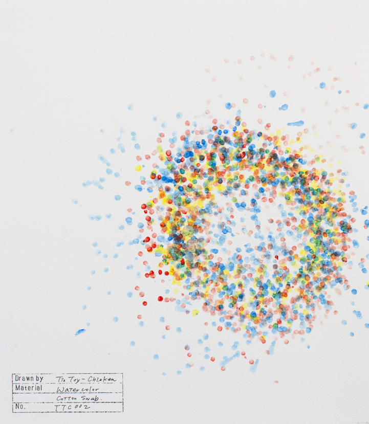 Echo Yang は、アナログな玩具や古いウォークマンなどと画材を組み合わせて絵画を制作しています。