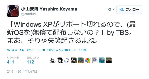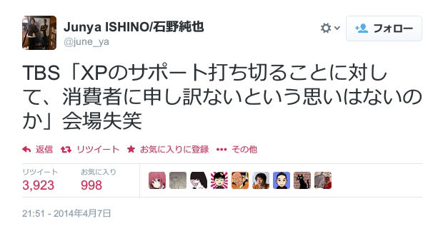 @june_ya: TBS「XPのサポート打ち切ることに対して、消費者に申し訳ないという思いはないのか」
