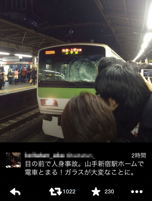山手線の人身事故の画像 必死に写真撮ってるの異常やと思った⊂((・x・))⊃